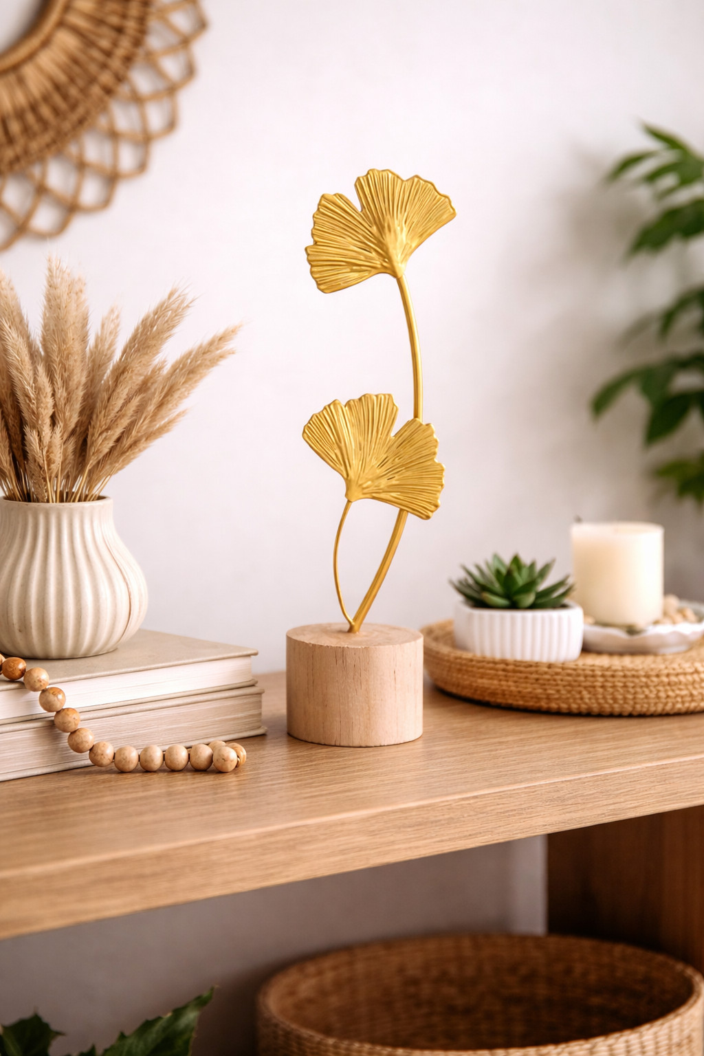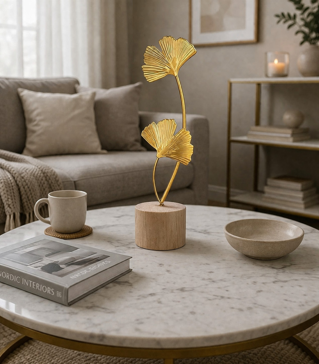 Apportez une touche raffinée à votre intérieur avec cette statue de feuille de ginkgo dorée. Son design délicat et moderne évoque la beauté naturelle tout en sublimant votre décoration ✨.