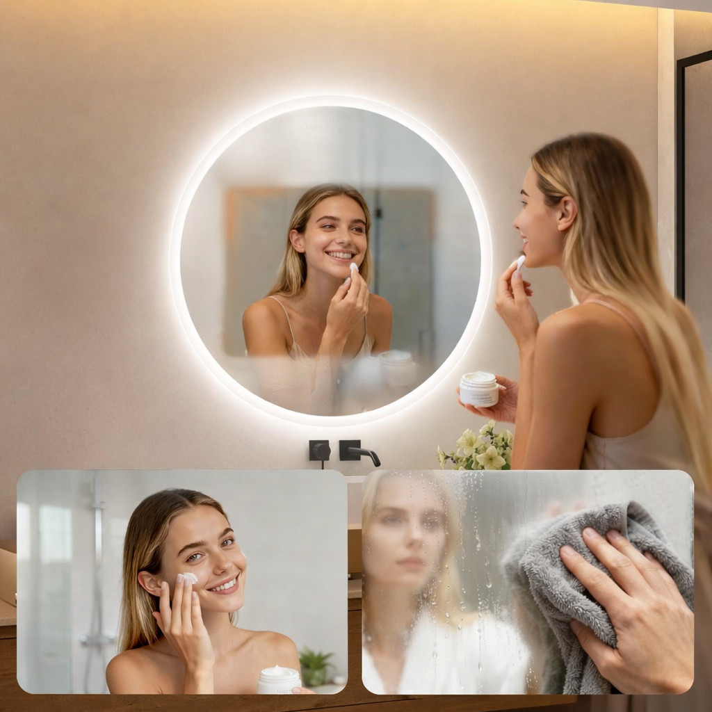 Grâce à son système chauffant intégré, le miroir reste clair même après une douche. Fini la condensation pour une visibilité parfaite 💧.