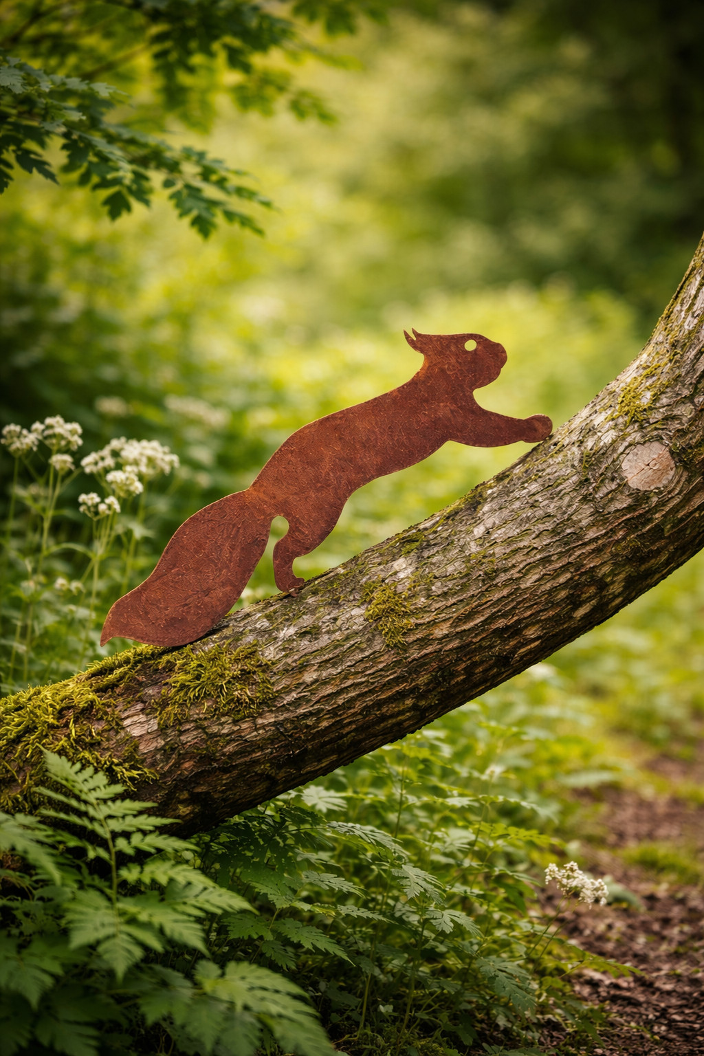 Avec sa finition brun rouillé, cet écureuil évoque un esprit vintage et chaleureux. Idéal pour décorer une souche, une clôture ou un tronc d’arbre, il attire immédiatement le regard 👀.