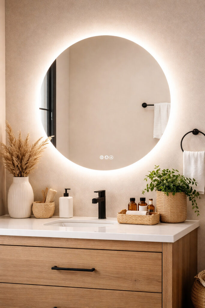 Miroir mural rond doré